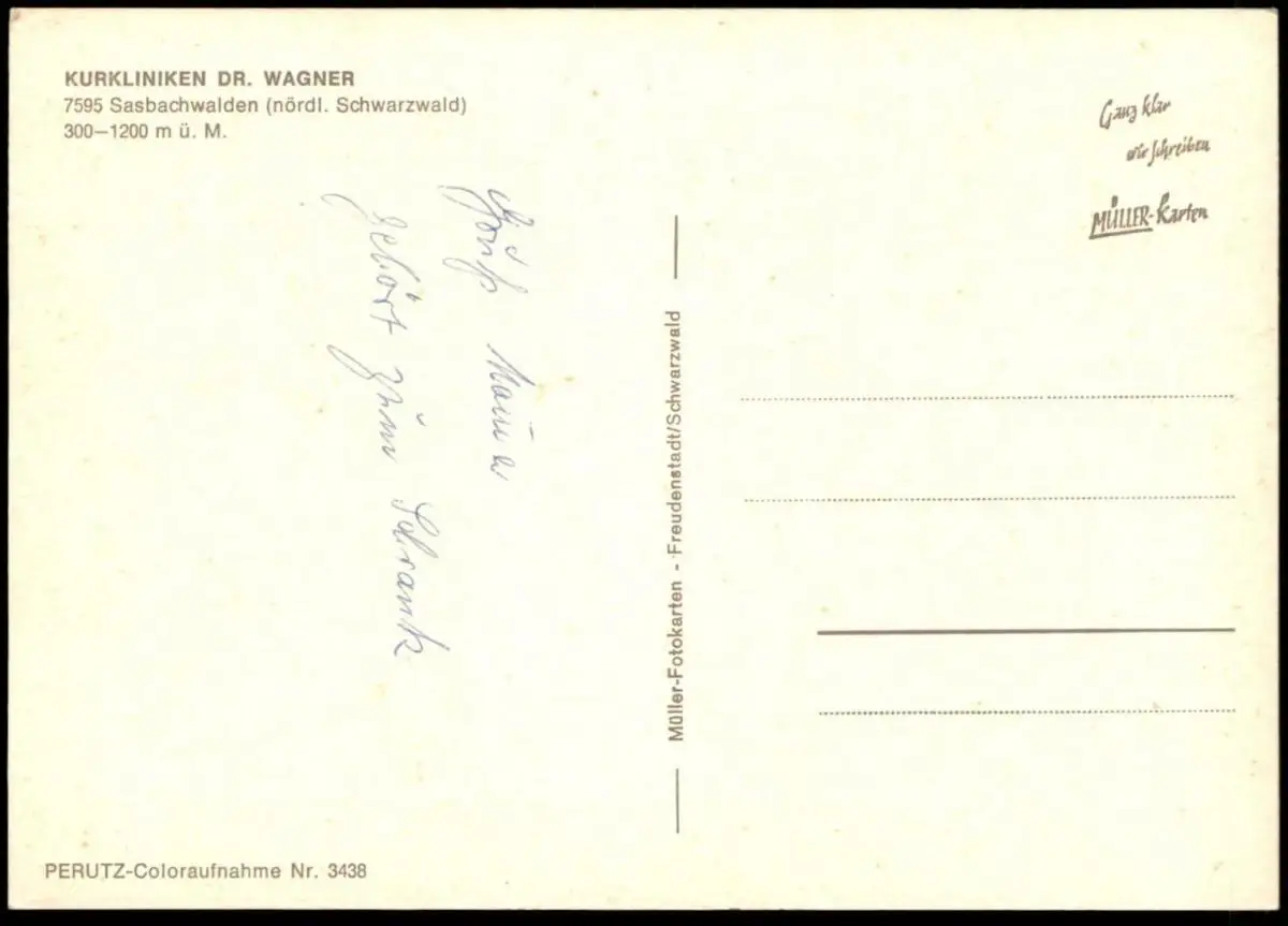 ÄLTERE POSTKARTE SASBACHWALDEN KURKLINIKEN DR. WAGNER SCHACHVerlag: Müller, Freudenstadt