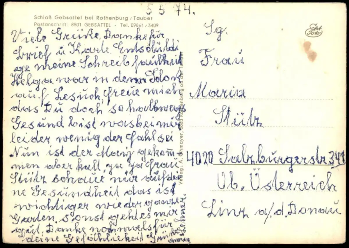 Gelaufen: 05.05.1974 nach Linz Donau, Briefmarke (sauber) entfernt