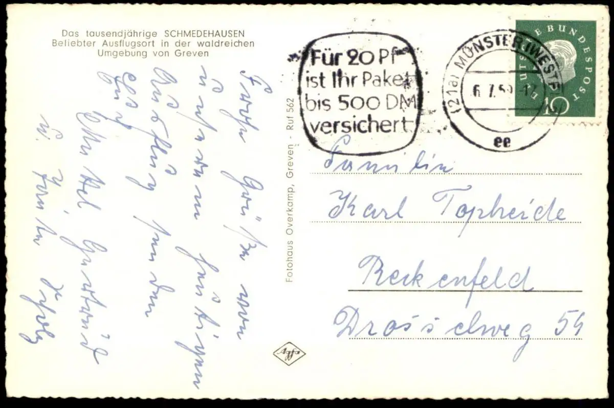 Gelaufen: 06.07.1959 mit Stempel Münster nach ReckenfeldErhaltung (s. Scan): gut / 915408