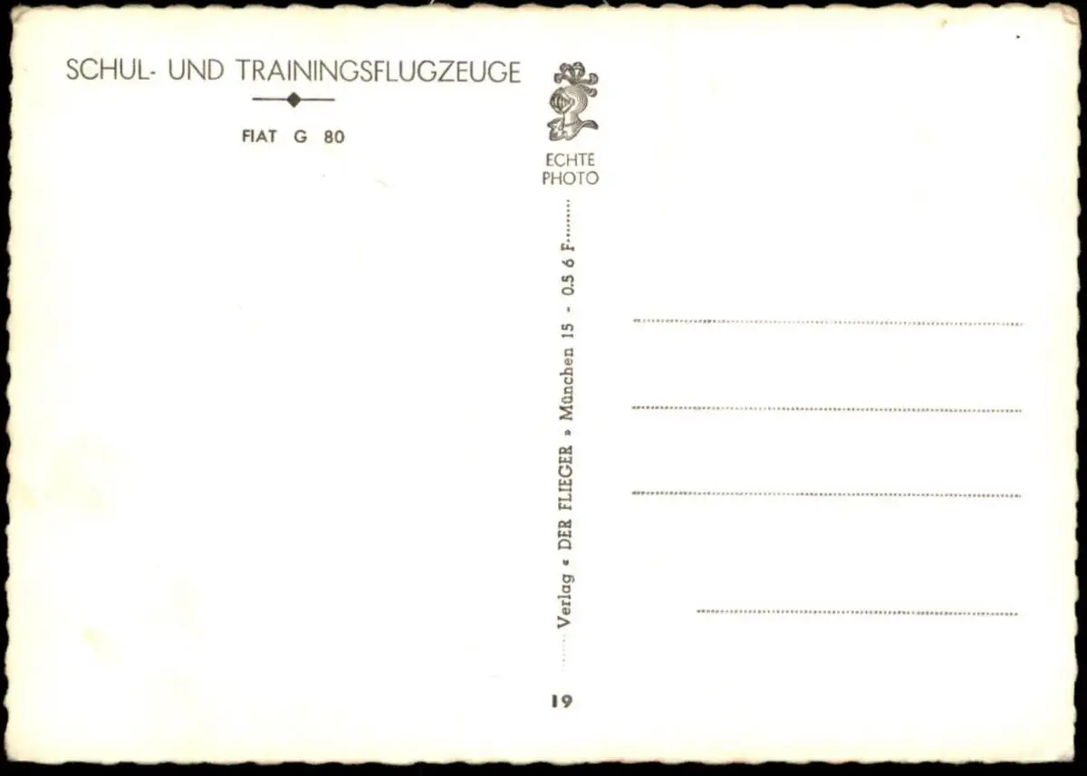 ÄLTERE POSTKARTE SCHUL- UND TRAININGSFLUGZEUGE FIAT G 80 MILITÄR-FLUGZEUGE