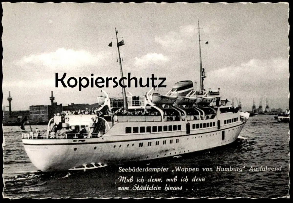 ÄLTERE POSTKARTE SEEBÄDERDAMPFER MS WAPPEN VON HAMBURG AUSFAHREND MUSS ICH... Schiff ship bateau Ansichtskarte postcard