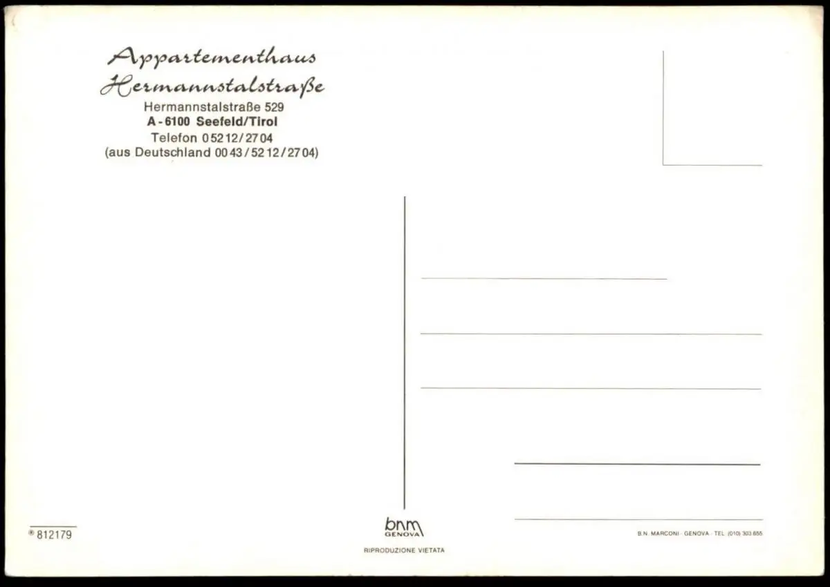 ÄLTERE POSTKARTE SEEFELD APPARTEMENTHAUS HERMANNSTALSTRASSE Verlag: bnm, Genova
