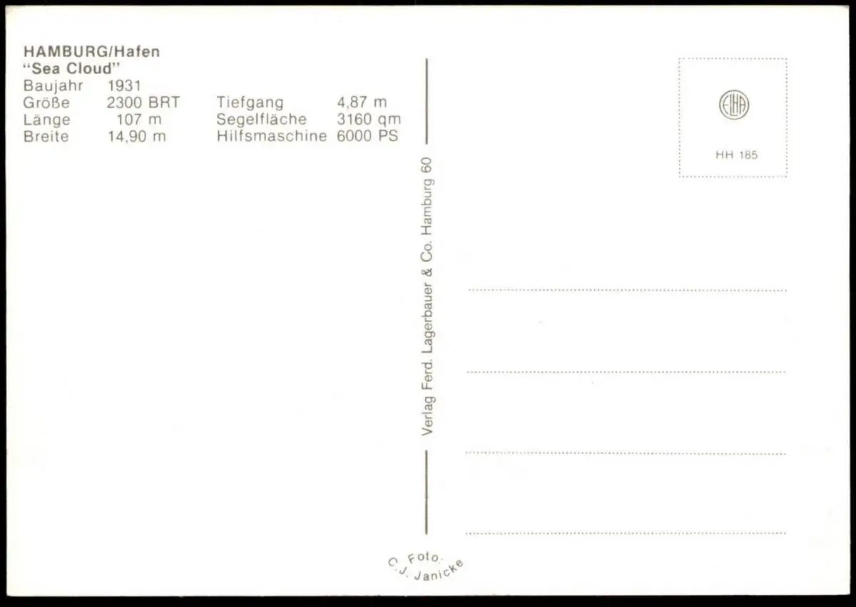 ÄLTERE POSTKARTE SEGELSCHIFF SEA CLOUD HAFEN HAMBURG VIERMASTER UND FEUERWEHR-SCHIFFVerlag: Ferd. Lagerbauer, Hamburg