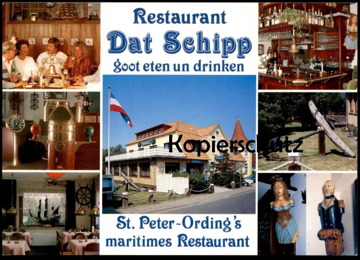 ÄLTERE POSTKARTE ST. PETER ORDING RESTAURANT DAT SCHIPP GALIONSFIGUR ANKER THEKE ancre anchor AK Ansichtskarte postcard