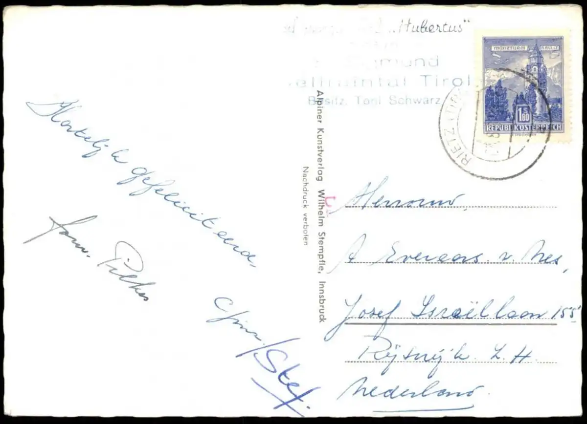 Gelaufen: 03.08.19xx mit Stempel Rietz Tirol nach Rijswijk Niederlande