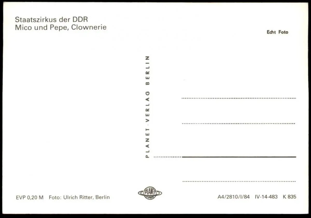 ÄLTERE POSTKARTE STAATSZIRKUS DER DDR MICO UND PEPE CLOWNERIEVerlag: Planet Verlag, Berlin