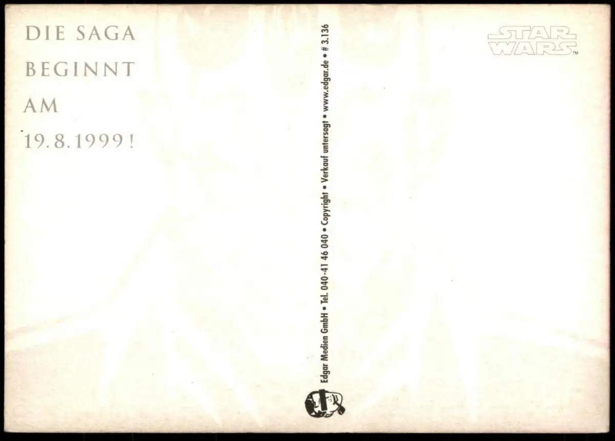 ÄLTERE POSTKARTE STAR WARS EPISODE 1 DIE SAGA BEGINNT AM 19.08.199 George Lucas Edgar Ansichtskarte postcard cpa AK