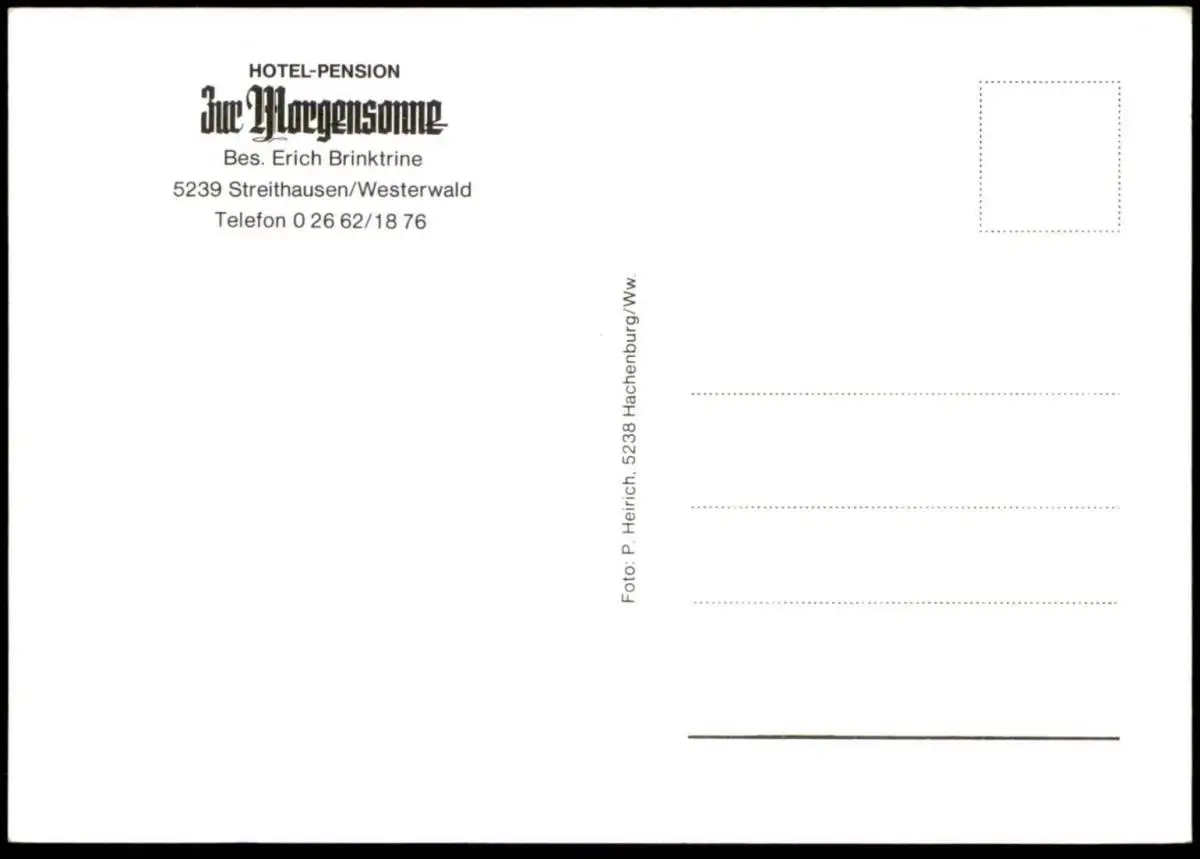 ÄLTERE POSTKARTE HOTEL PENSION ZUR MORGENSONNE STREITHAUSEN BES. ERICH BRINKTRINEVerlag: P. Heirich, Hachenburg