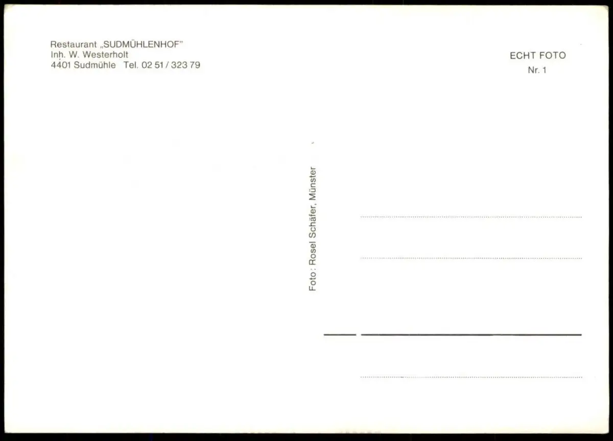 ÄLTERE POSTKARTE RESTAURANT SUDMÜHLENHOF INH. W. WESTERHOLT SUDMÜHLEVerlag: Rosel Schäfer, Münster