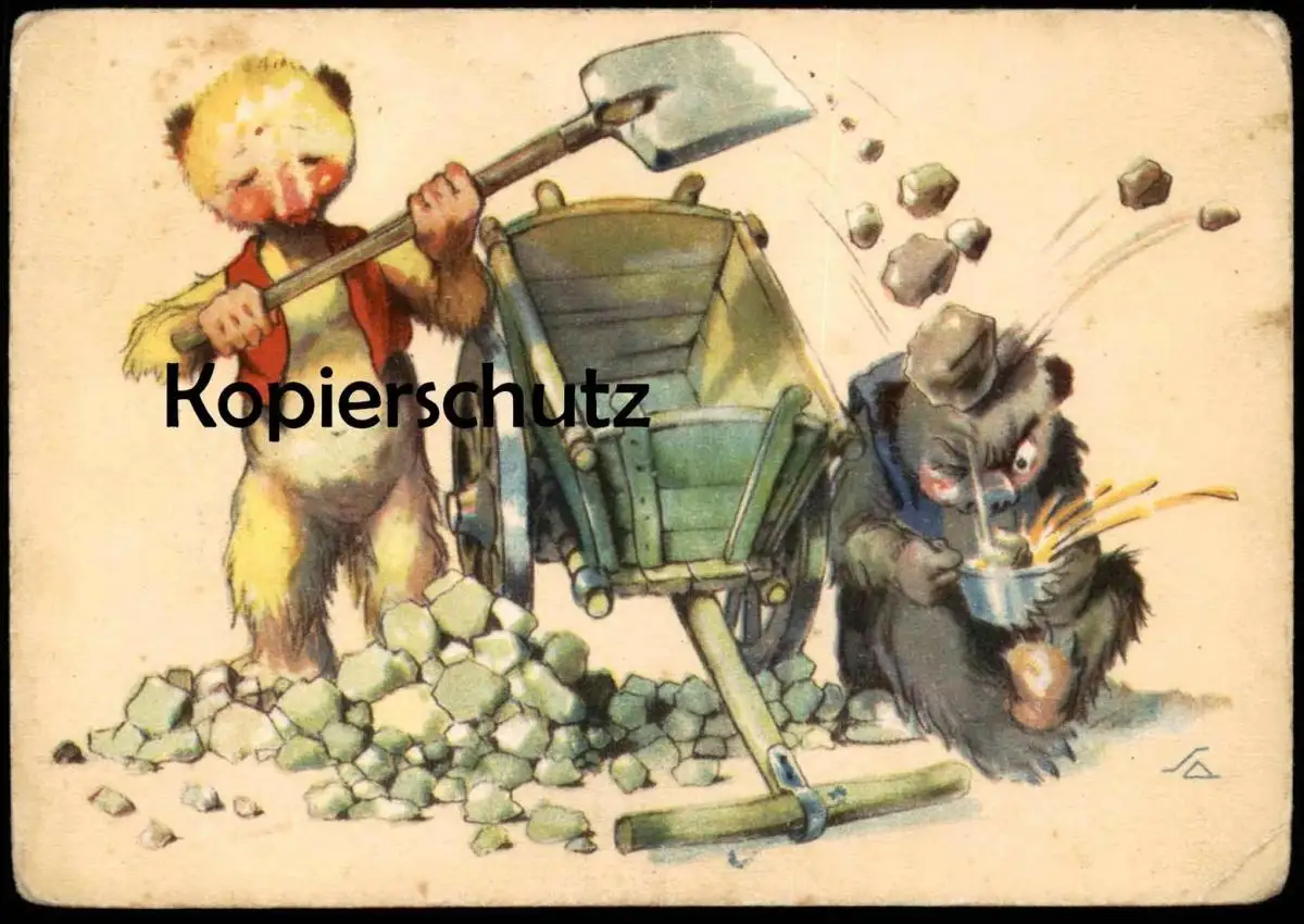 ÄLTERE POSTKARTE ZWEI BÄREN ARBEIT & ESSEN HUMORVerlag: unbekannt