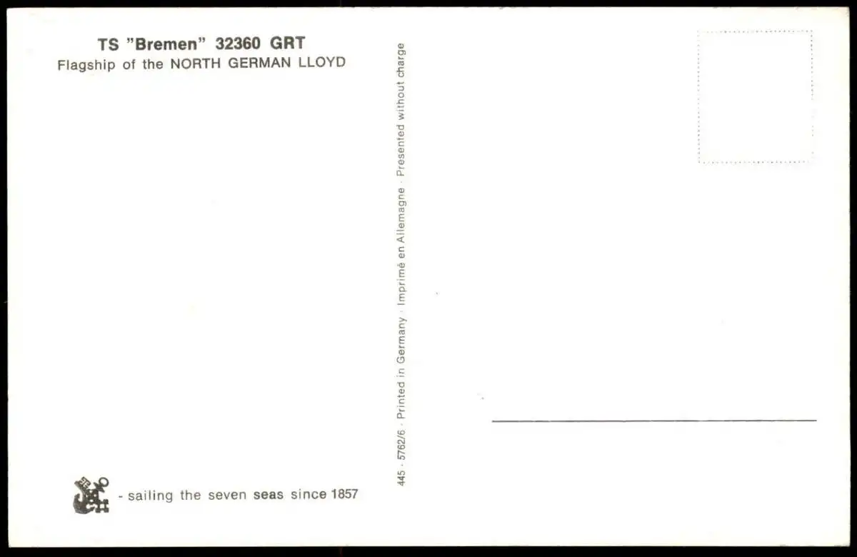 ÄLTERE POSTKARTE TURBINEN-SCHNELLDAMPFER BREMEN FLAGSHIP OF THE NORTH GERMAN LLOYD SAILING THE SEVEN SEAS SINCE 1857Verlag: unbekannt