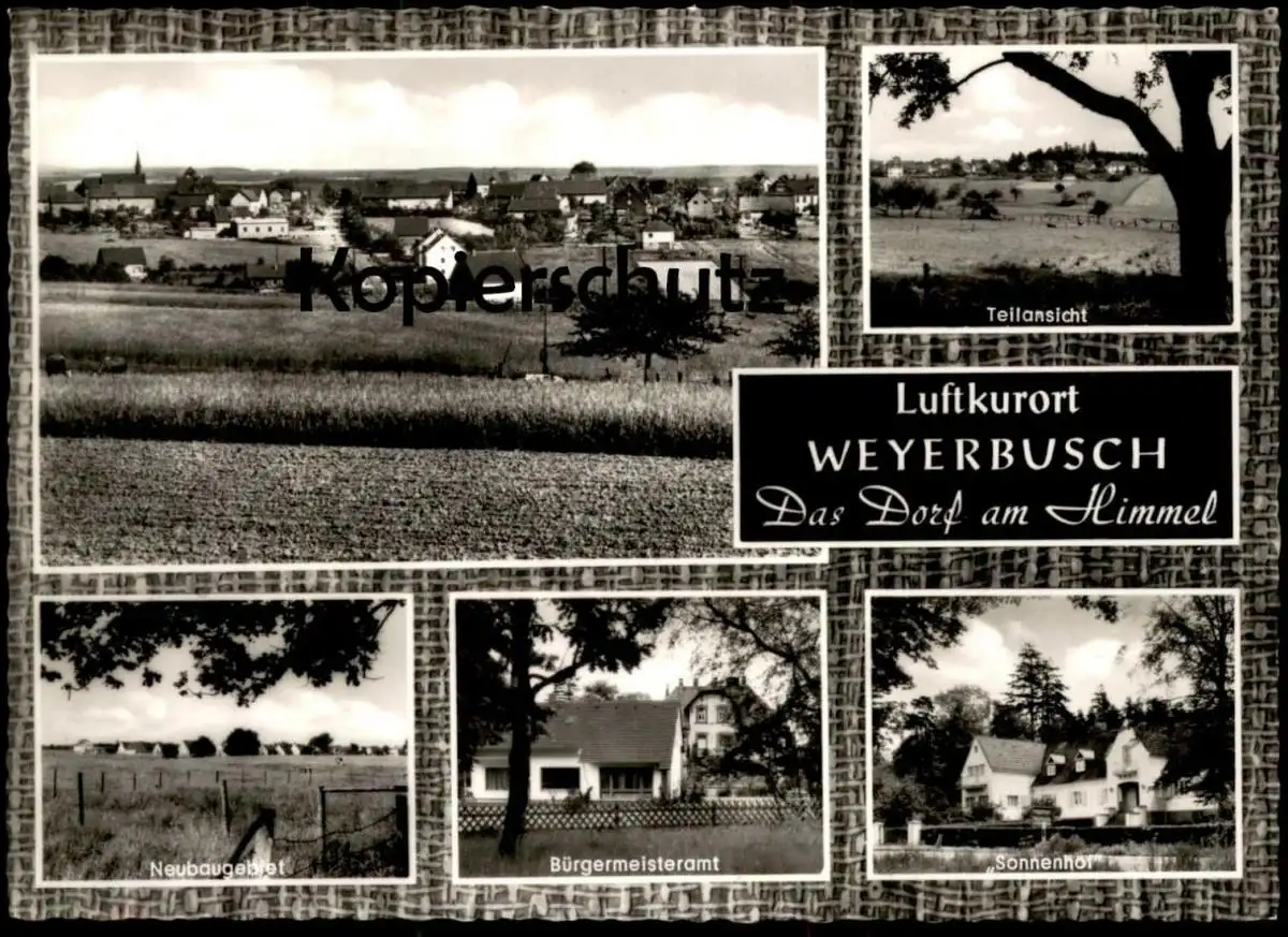 ÄLTERE POSTKARTE WEYERBUSCH DAS DORF AM HIMMEL NEUBAUGEBIET BÜRGERMEISTERAMT SONNENHOF ALTENKIRCHEN FLAMMERSFELD