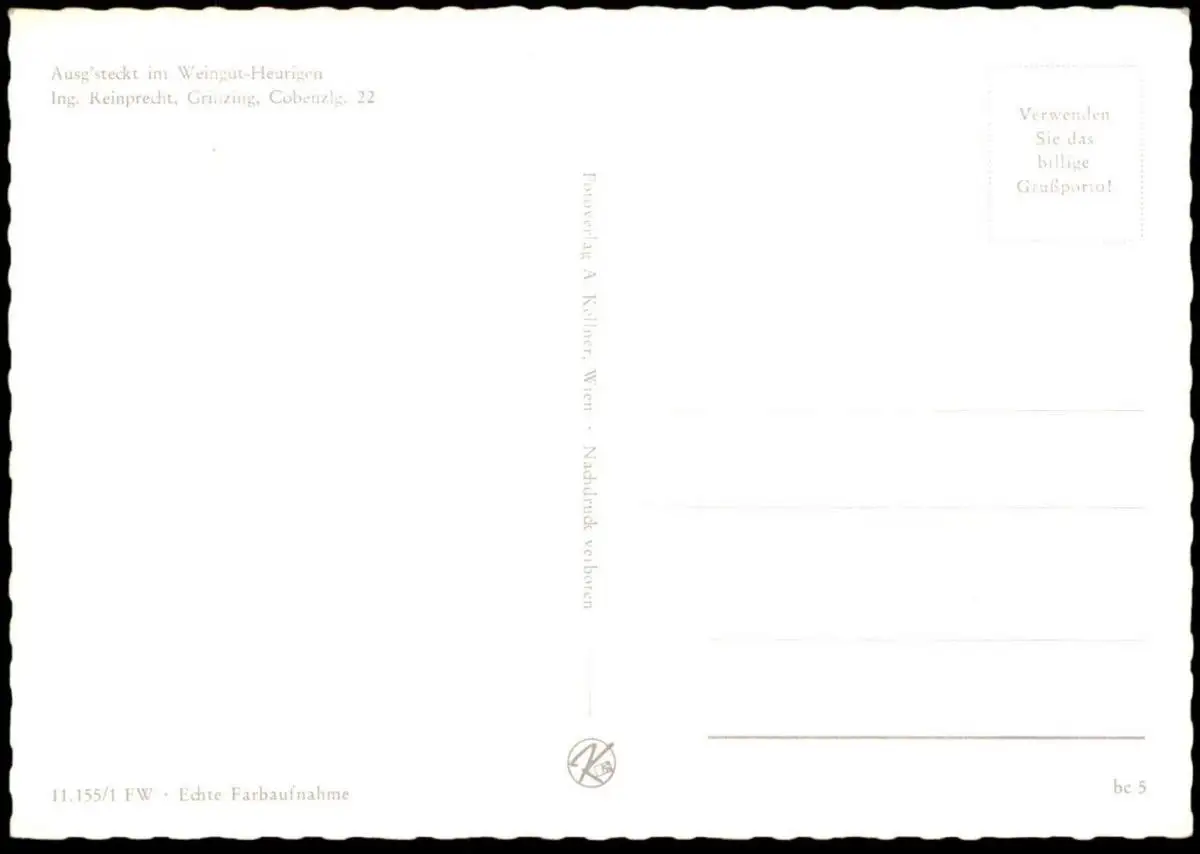 ÄLTERE POSTKARTE WIEN GRINZING AUSG'STECKT IM WEINGUT HEURINGEN ING. REINPRECHT GAMS GEMSE BIRKHUHN Jagd Ansichtskarte