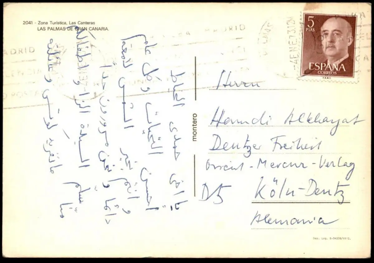 Gelaufen: xx.xx.197x mit Stempel Las Palmas nach KölnErhaltung (s. Scan): gut, Ecken minimal bestoßen / 916909