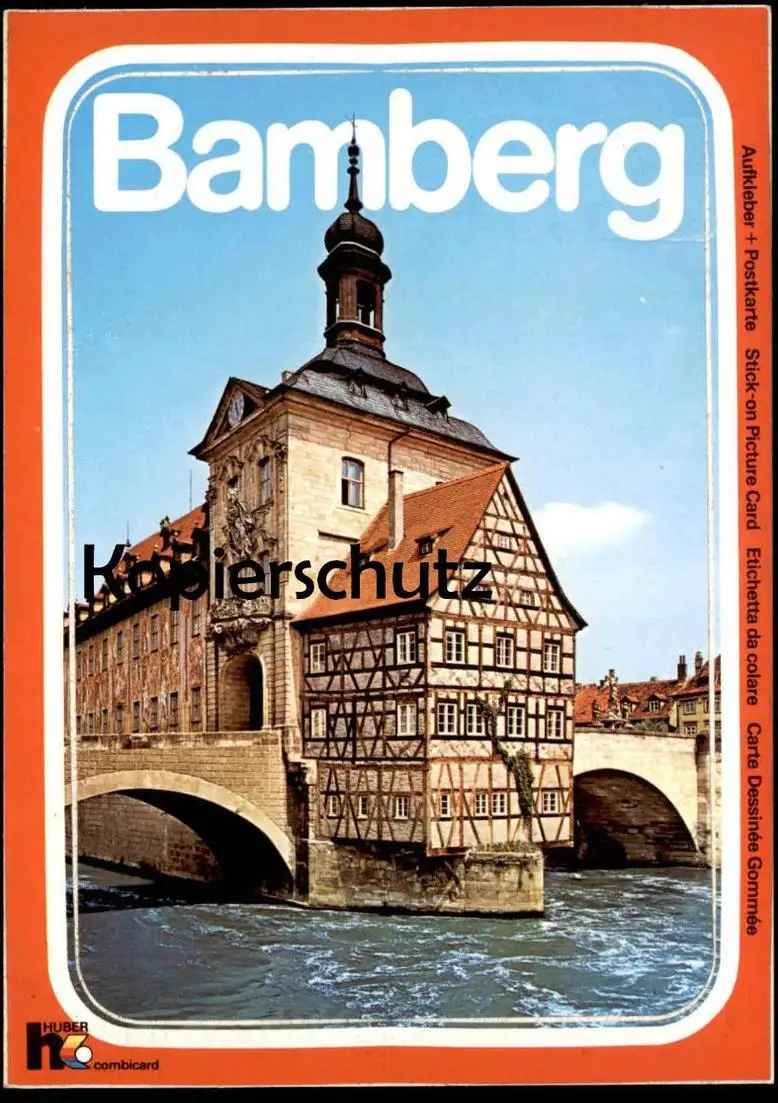 ÄLTERE POSTKARTE & AUFKLEBER BAMBERG RATHAUS stick-on sticker townhall autocollant cpa postcard AK Ansichtskarte