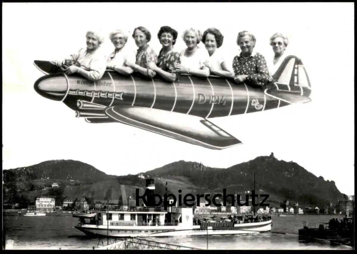 ÄLTERES FOTO KÖNIGSWINTER FRAUEN FLIEGEN FLUGZEUG FLIEGER DAMPFER SCHIFF Fotomontage Montage Photo Surrealisme ship