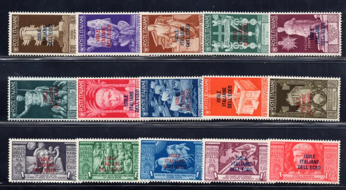MNH - Vollgummi - Ägäis - Augustus Nr. 99/108 + Luftpost Nr. 47/51 komplette Serie fünfzehn Werte neu perfekt mit Vollgummi, gut zentriert - Kat. euro 650 Cod. 2987/WEB