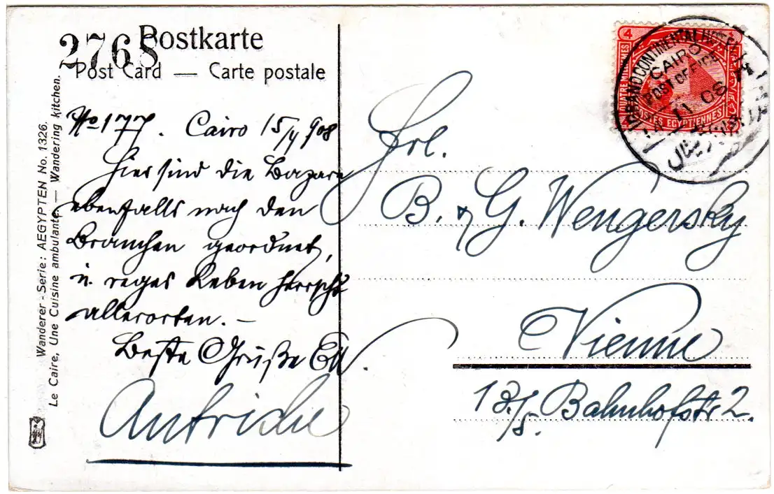 Ägypten 1908, 4 M. auf Karte m. klarem Cairo Grand Continental Hotel Stempel