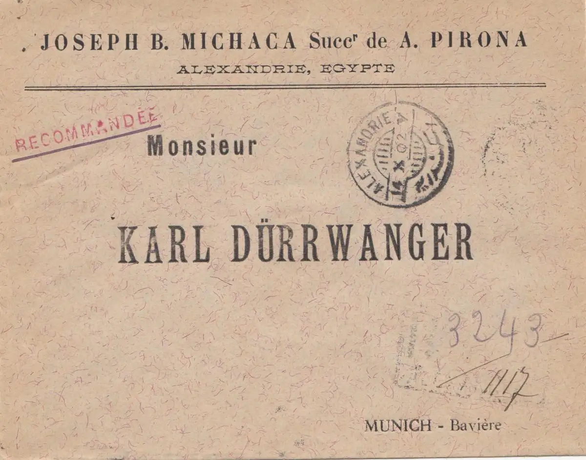 Ägypten/Egypte: 1902 Einschreiben Alexandria nach München