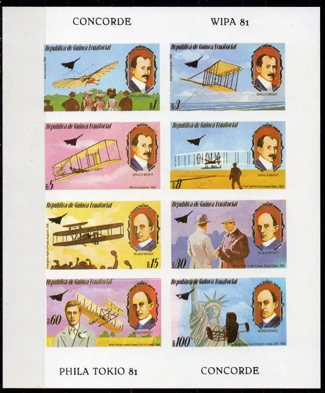 Äquatorial-Guinea, Mi-Nr. 1460 - 1467 (*) im Kleinbogen, WIPA 81, PHILA TOKIO 81, Geschichte der Luftfahrt
