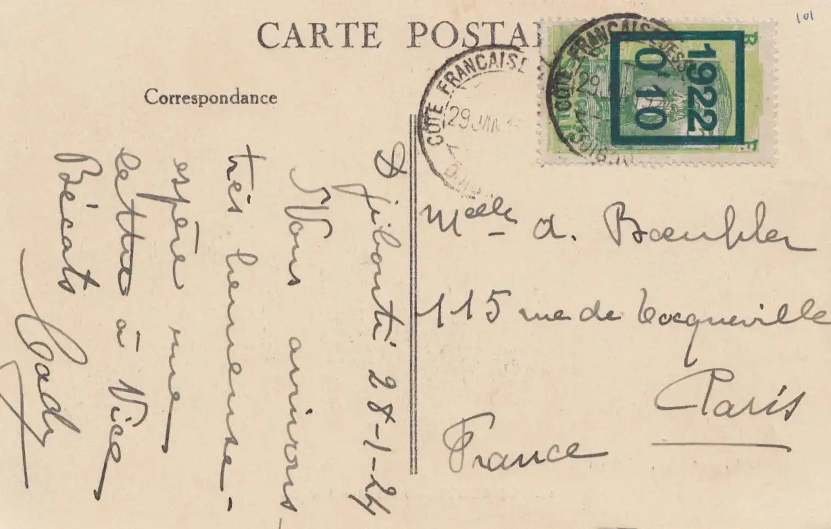 Äthiopien: 1924: Ansichtskarte Cote Francaise Djibouti Habitation nach Paris