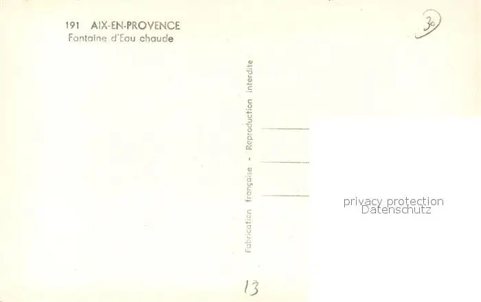 Aix-en-Provence Fontaine d’Eau chaude Aix-en-Provence postalisch nicht gelaufen 1921-1965 Erhaltung siehe scans [WerneD78] WernPID7