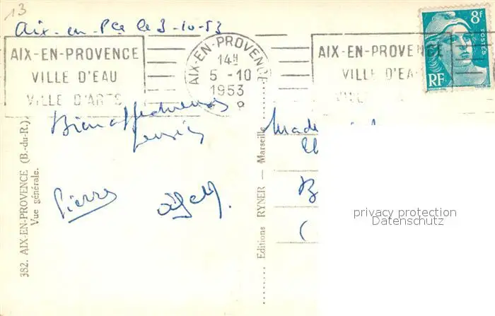 Aix-en-Provence Vue générale de la ville Aix-en-Provence postalisch gelaufen 1953 Erhaltung siehe scans [FriedD77] Frierer