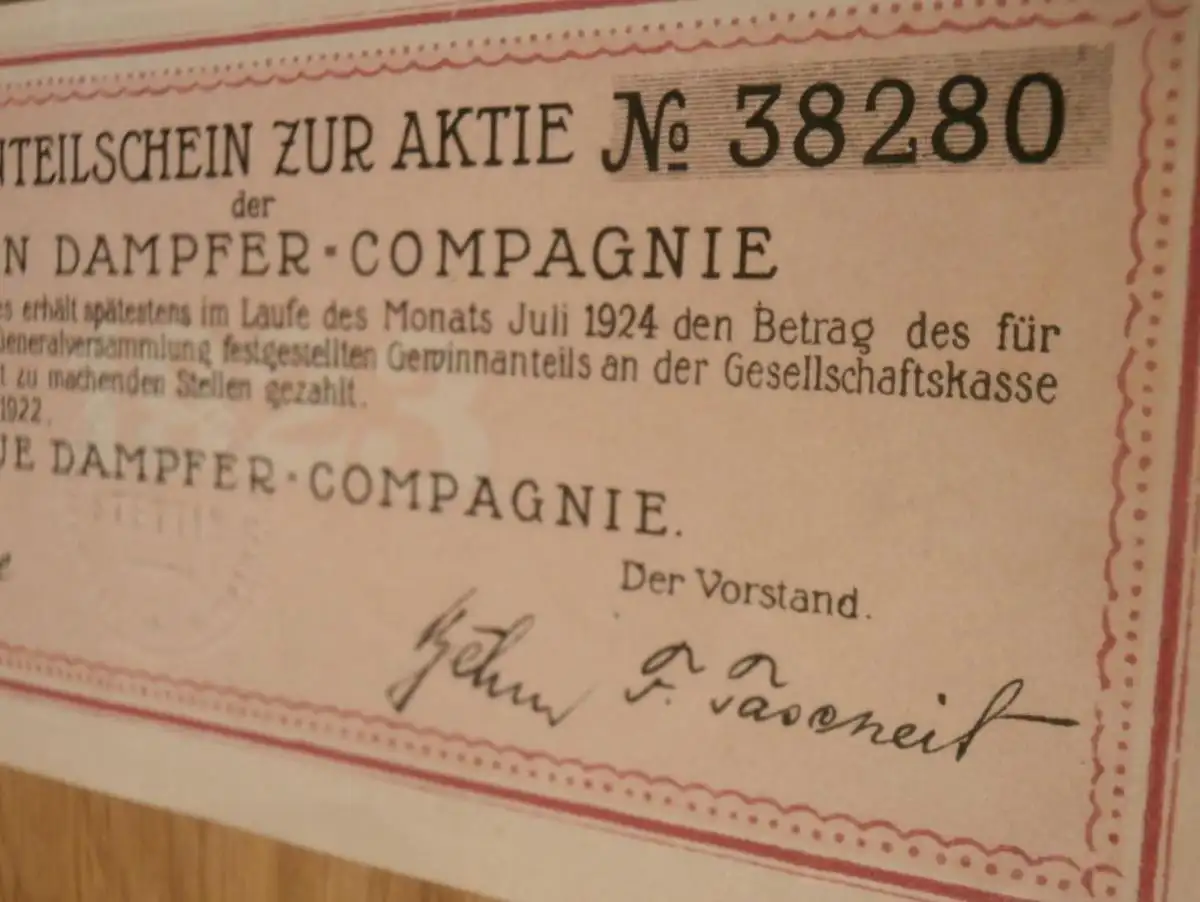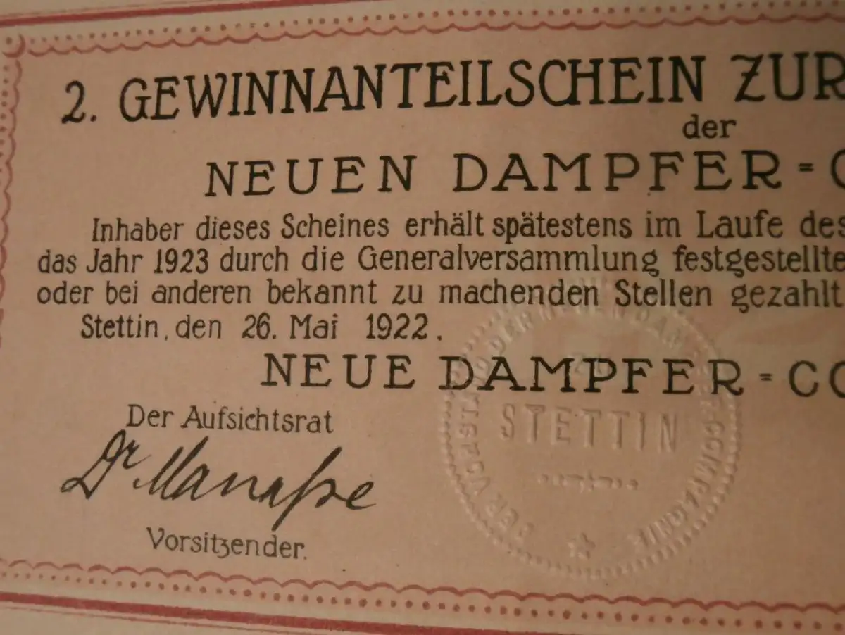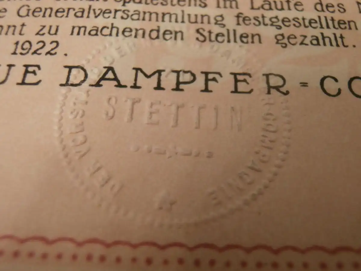 Aktie - Anteilschein , Dampfer Compagnie in Stettin 1922 , Pommern !!