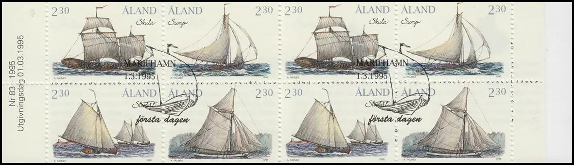 Aland-Markenheftchen 3 Segelboote der Schären, ESSt 1.3.1995