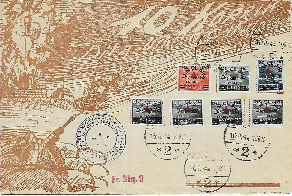 Albanien: kompletter Überdrucksatz 2 Jahre Volksarmee, Shkoder, 16.7.1945