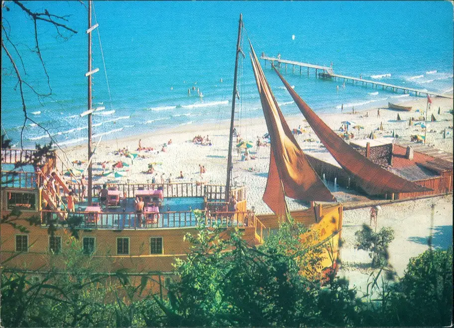 Albena Албена Strand mit Bar-Fregatte Arabela 1980