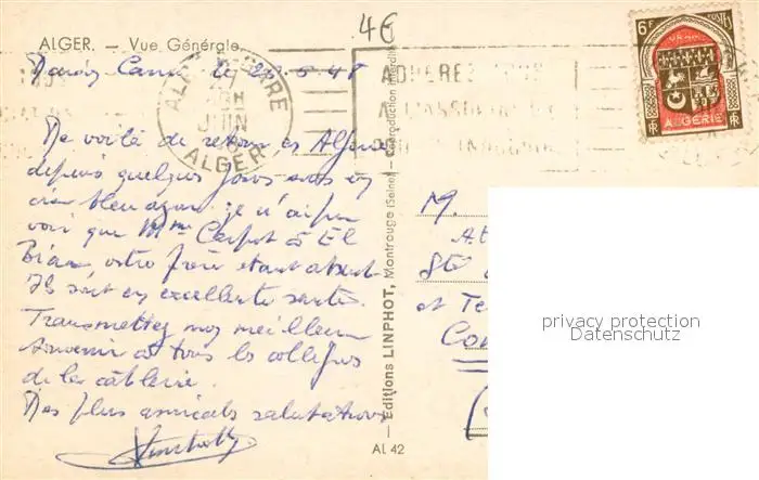 Alger_Algerien Vue generale Alger Algerien postalisch gelaufen 1948 Erhaltung siehe scans [WerneD78] WernPID7