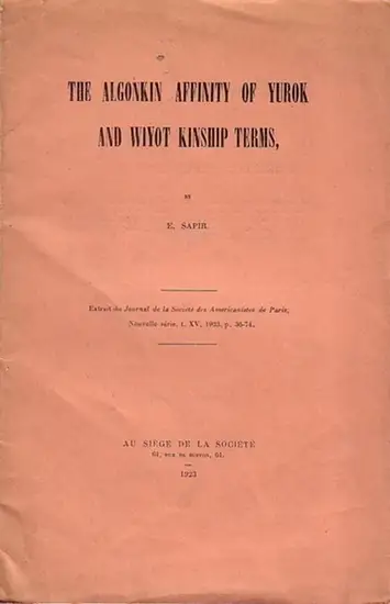 Algonkin. - Sapir, E: The Algonkin affinity of Yurok and Wiyot Kinship terms. Extrait du Journal de la Societe des Americanistes de Paris, Nouvelle serie, XV, 1923).