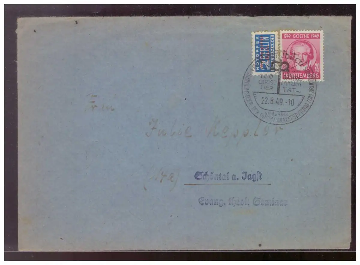 FR- Zone (009426) Brief mit MNR 45 Württemberg gelaufen mit Sonderstempel am 22.8.1949