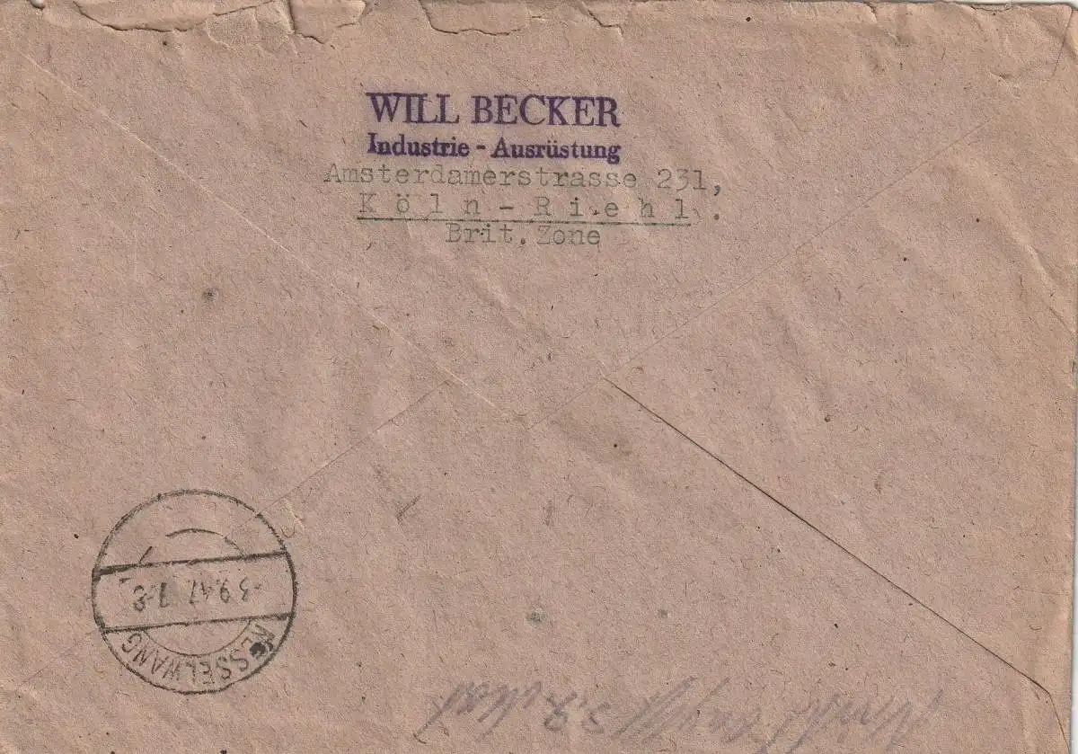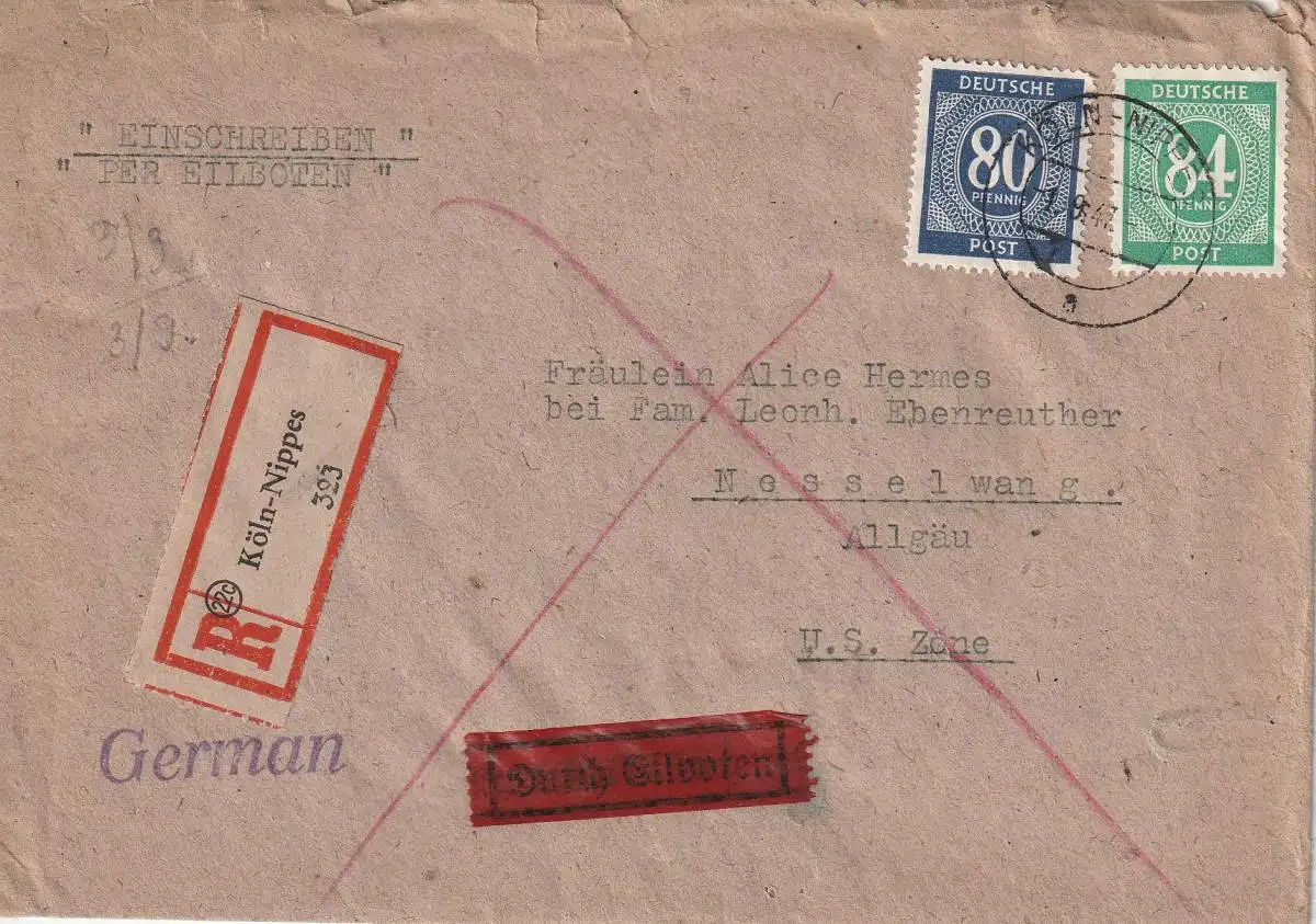 5000 KÖLN, POSTGESCHICHTE 1947, Einschreiben Eilboten - Brief von Köln - Nippes nach Nesselwang