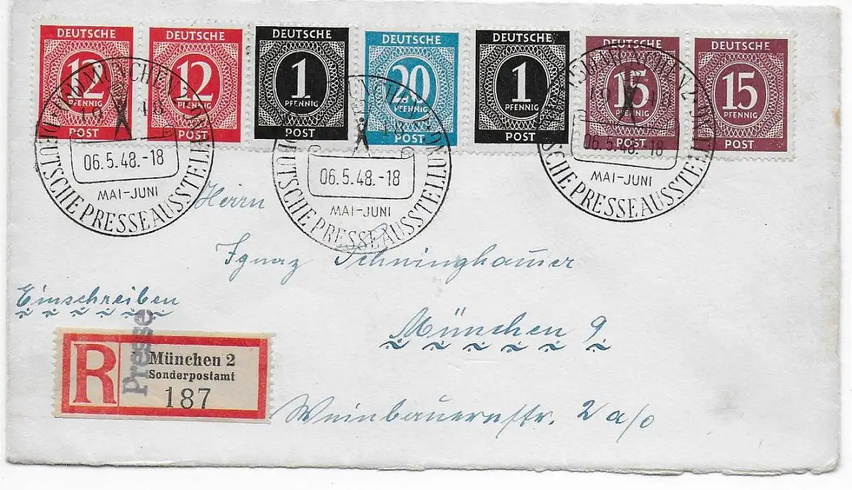 All. Besetzung 1948: Einschreiben München Sonderpostamt-Presse-