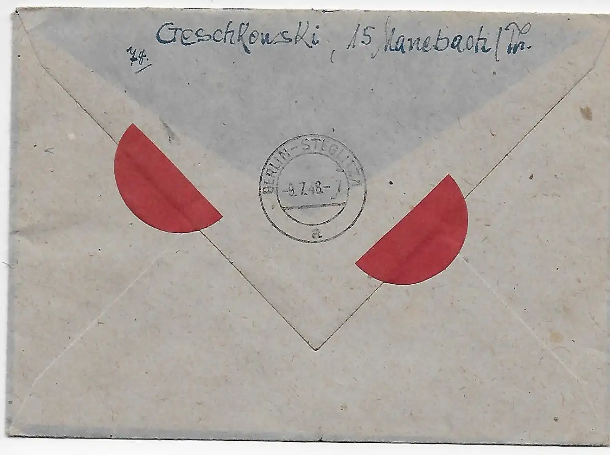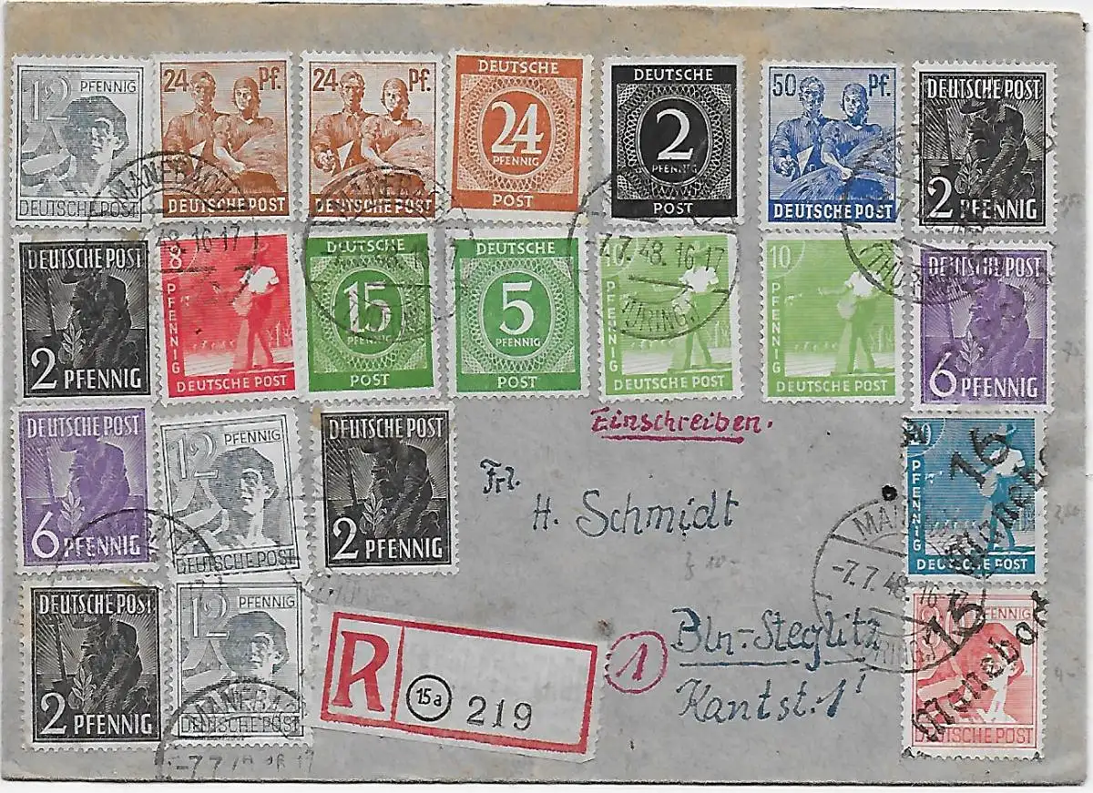 All. Besetzung: Einschreiben Manebach nach Steglitz 1948, 10fach MiF, selten
