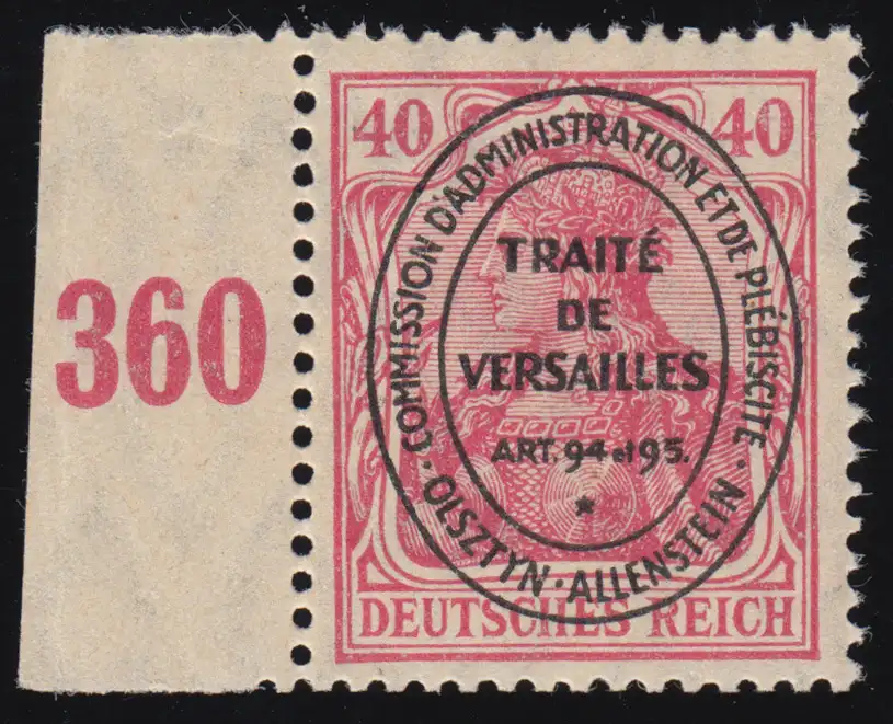 Allenstein I Oval-Aufdruck Germania 40 Pf karminrot, postfrisch ** signiert