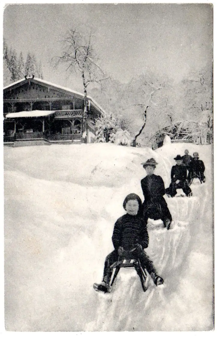 Alpenwirtschaft Vorderbrand m. Rodelbahn, 1906 gebr. sw Winter-AK