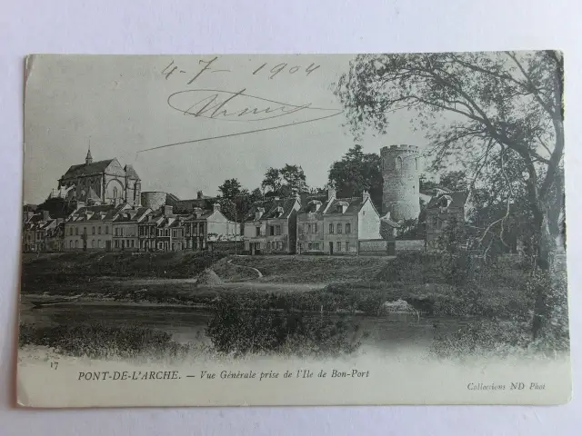 Alte AK Pont de L’Arche Vue generale prise de l’Ile de Bon Port [aM769]