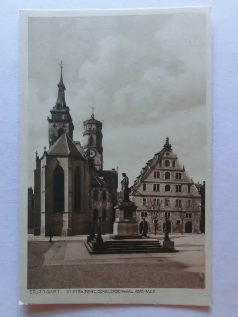 Alte AK Stuttgart Stiftskirche Schillerdenkmal Kornhaus [aE821]