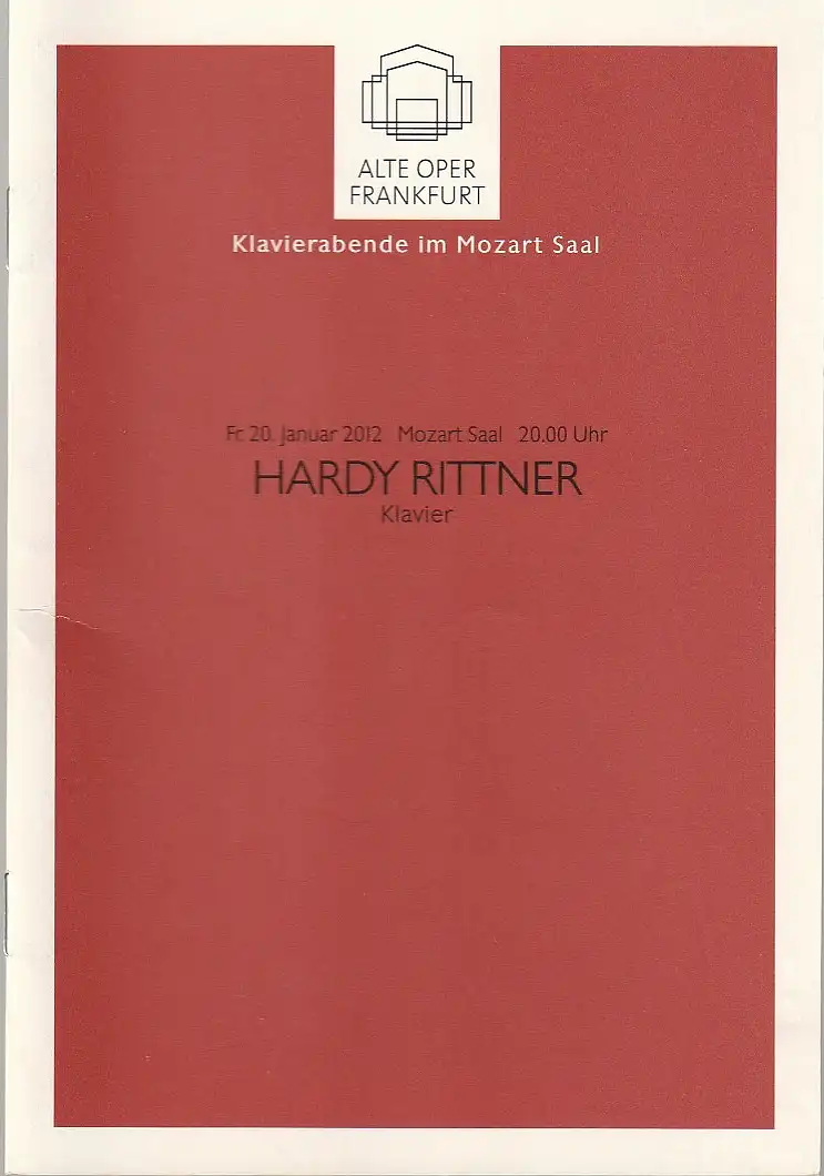 Alte Oper Frankfurt, Michael Hocks, Karen Allihn: Programmheft HARDY RITTNER Klavier 20. Januar 2012 Mozart Saal Klavierabende im Mozart Saal 2011 / 2012.