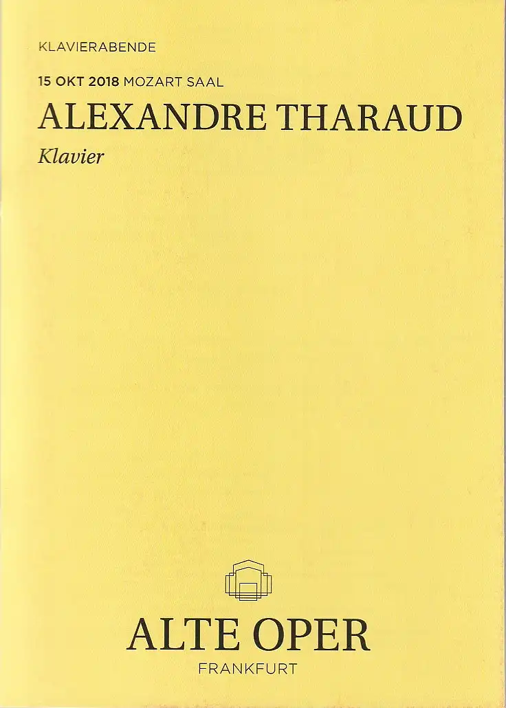 Alte Oper Frankfurt, Stephan Pauly, Gundula Tzschoppe, Bjorn Woll: Programmheft ALEXANDRE THARAUD Klavier 25. Oktober 2018 Mozart Saal Klavierabende.