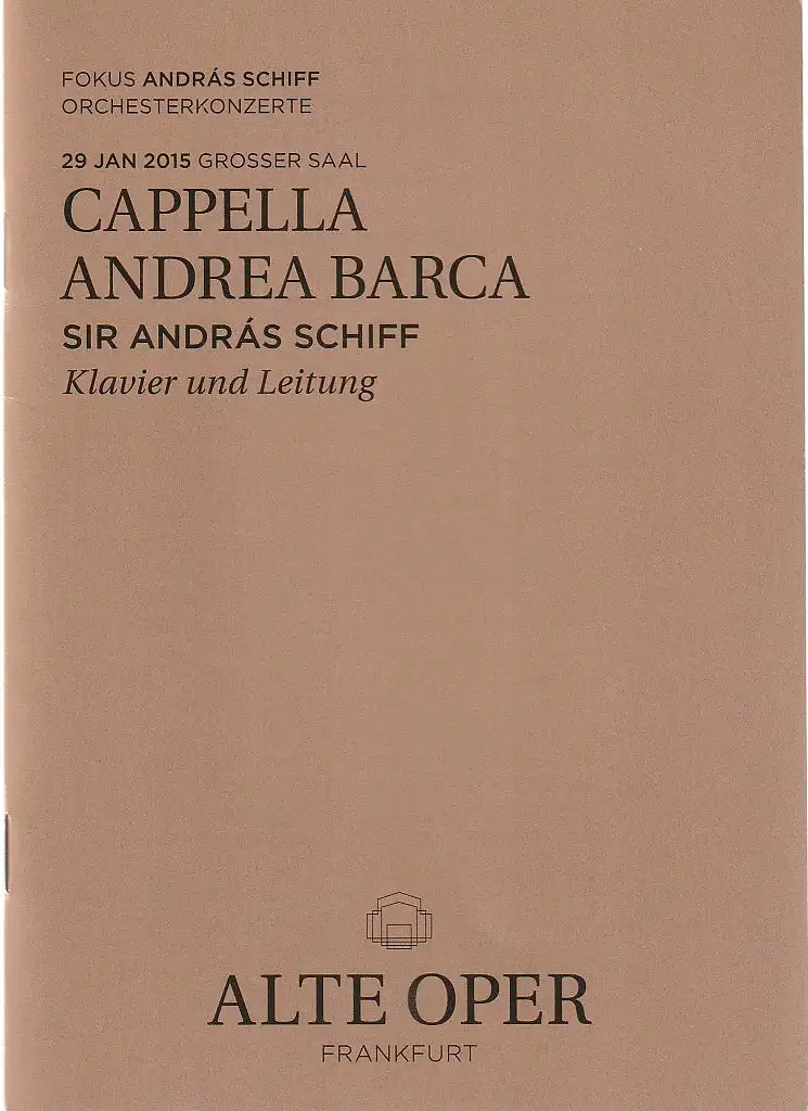 Alte Oper Frankfurt, Stephan Pauly, Gundula Tzschoppe, Jens Schubbe, Karen Allihn: Programmheft CAPELLA ANDREA BARCA 29. Januar 2015 Grosser Saal Fokus Andras Schiff Orchesterkonzerte 2014 / 15.