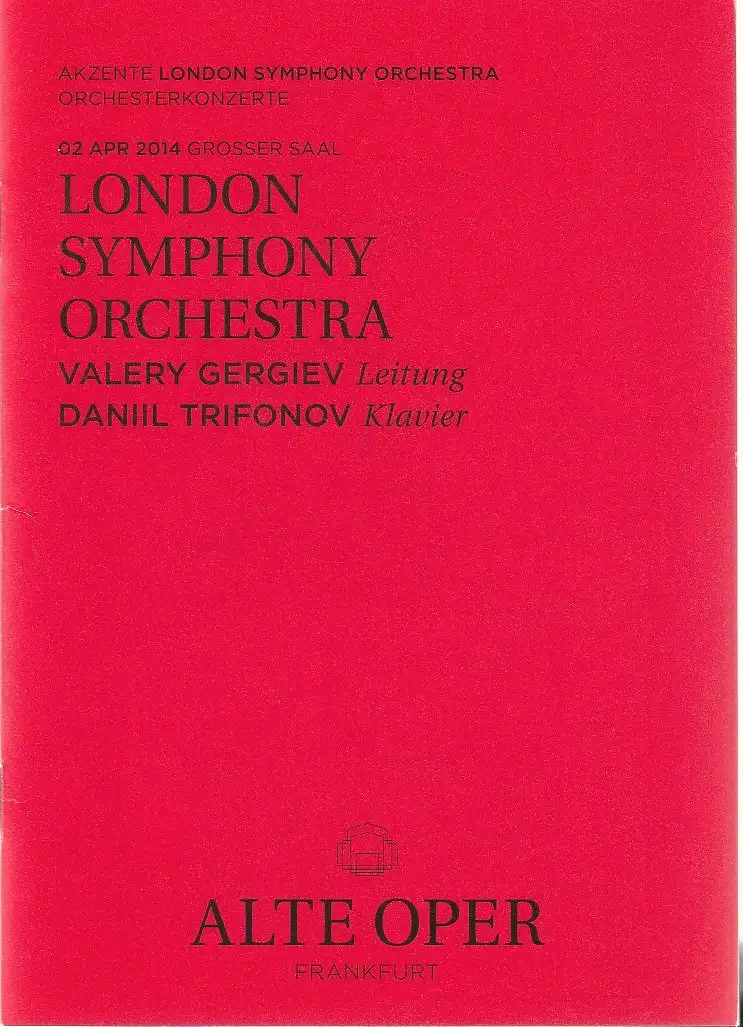 Alte Oper Frankfurt, Stephan Pauly, Gundula Tzschoppe, Karen Allihn: Programmheft LONDON SYMPHONY ORCHESTRA DANIL TRIFONOV 2. April 2014 Grosser Saal Orchesterkonzerte 2013 / 14.