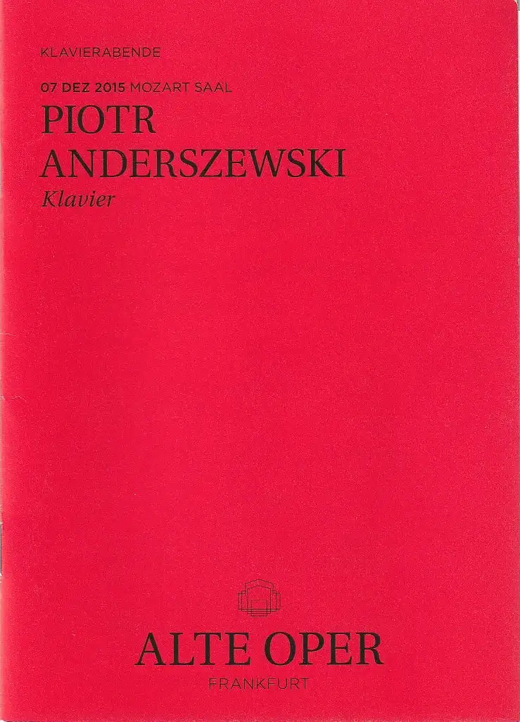 Alte Oper Frankfurt, Stephan Pauly, Gundula Tzschoppe, Karen Allihn: Programmheft PIOTR ANDERSZEWSKI Klavier 7. Dezember 2015 Mozart Saal Klavierabende.