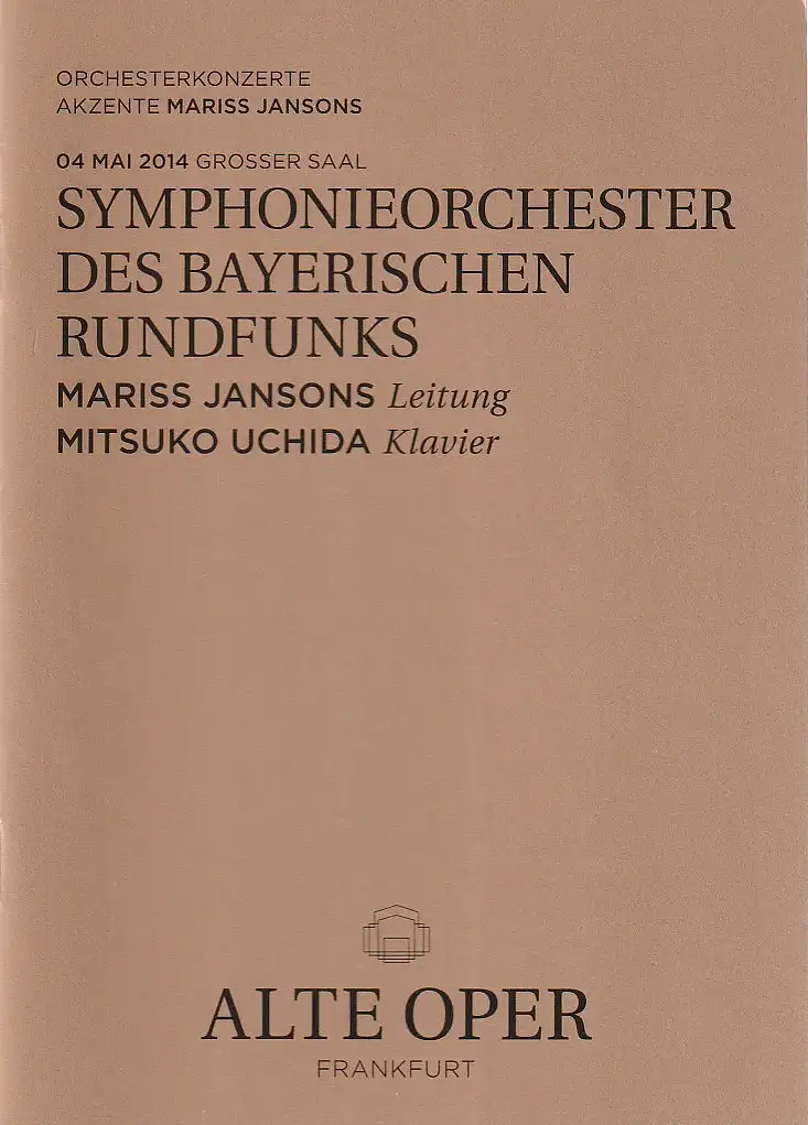 Symphonieorchester des Bayerischen Rundfunks. Leitung: Mariss Jansons. Mitsuko Uchida, Klavier. Programm: LUDWIG VAN BEETHOVEN: Konzert für Klavier und orchester Nr. 4 G-Dur, op. 58. HECTOR BERLIOZ: Symphonie Fantastique op. 14 - Theaterprogramm, Opernprogramm, Ballettprogramm, Musicalprogramm, Konzertprogramm, Theatermemorabilia, Programmhefte Sammlung, deutsche Theatergeschichte.