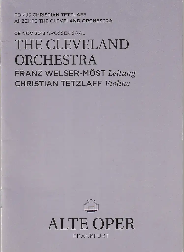 Alte Oper Frankfurt, Stephan Pauly, Karen Allihn: Programmheft THE CLEVELAND ORCHESTRA 9. November 2013 Grosser Saal Orchesterkonzerte 2013 / 14 Fokus Christian Tetzlaff Akzente The Cleveland Orchestra.