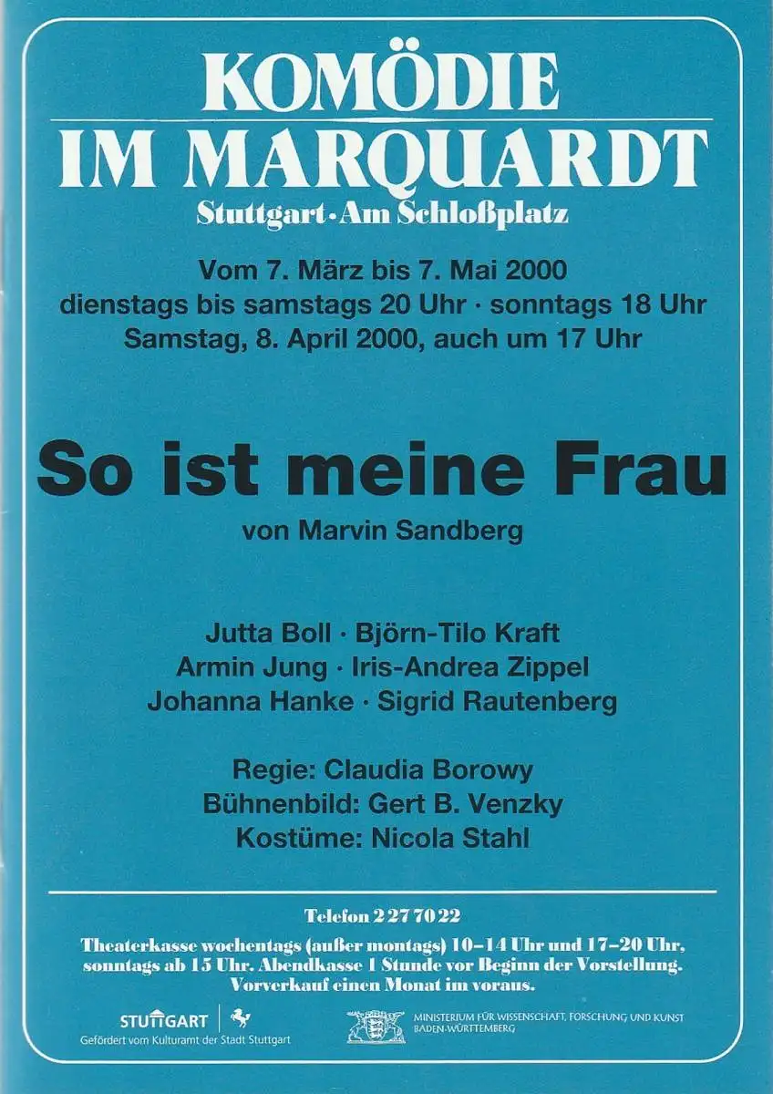 Titel: Programmheft Marvin Sandberg SO IST MEINE FRAU Premiere 7. März 2000 Spielzeit 1999 / 2000