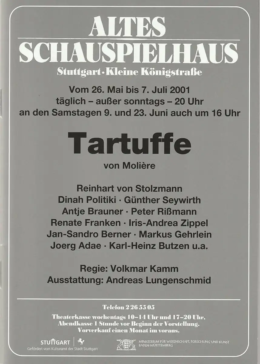 Altes Schauspielhaus und Komödie im Marquardt, Elert Bode, Annette Weinmann, Christa Bode: Programmheft Moliere TARTUFFE Premiere 26. Mai 2001 Spielzeit 2000 / 2001.